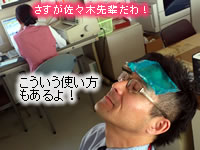 いよいよやってきた本格的「夏」!! 昨日は帯広で今年はじめての真夏日を記録。 「あつい〜!」 「あち〜!」といった声があちらこちらから聞こえてきますが、ここにそんな暑さと無縁のクールガイが1人☆ 手持ちのグッズを駆使して、暑さをエコに乗り切る佐々木スタッフです♪