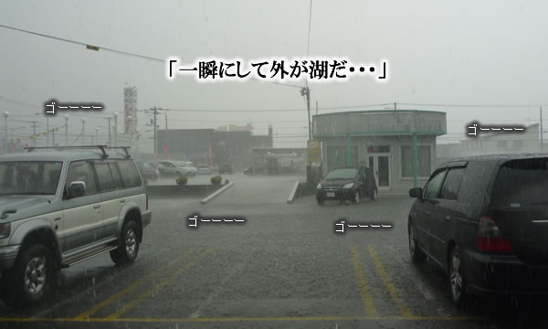 なんて穏やかな会話の数十秒後、空から滝のような雨が降ってきました。