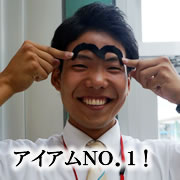 一方、写真(小)の小島スタッフも特技は野球。